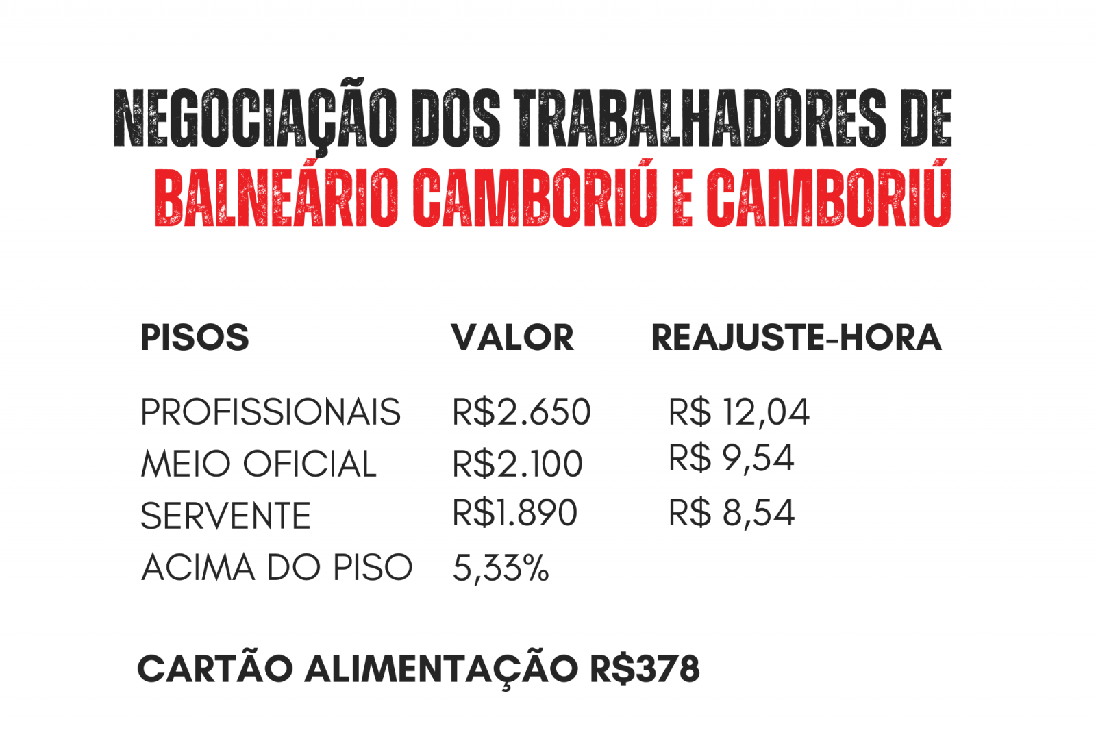 Além do reajuste salarial o sindicato conquistou o aumento no cartão alimentação, que era o valor de R$315 e passou para R$378. Além disso as cláusulas sociais foram mantidas, permanecendo os trabalhadores o direito a receber quinquênio, Auxílio funeral, adiantamento salarial e cartão alimentação ou cesta básica.